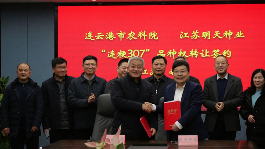 2023年1月9日,江蘇明天種業科技股份有限公司分別與南京農業大學、連云港市農業科學院在南京農業大學金陵研究院和公司會議室,就萬建民院士團隊秈稻品種最新成果“南9優801”、“揚9優8011”及江蘇明天種業與連云港市農科院聯合選育的粳稻新成果“連粳307”隆重舉行轉讓簽約儀式。江蘇明天種業成功簽約三品種全國獨占實施許可經營權。江蘇省農業農村廳、南京農業大學、連云港市農科院等領導、專家到會見證。